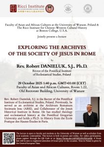 Wydział Kultur Azji i Afryki wraz z Instytutem Ricciego w przy Boston College w Stanach Zjednoczonych mają przyjemność zaprosić na koncert Music and Missionaries in the Forbidden City organizowany w ramach warsztatów Historical Legacies of Christianity in East Asia: Bridging a New Generation of Scholars and Scholarship. W trakcie koncertu zaprezentowana zostanie nowożytna muzyka ludowa i dworska, którą europejscy misjonarze wykonywali na dworze Mingów i Qingów w Zakazanym Mieście w Pekinie.